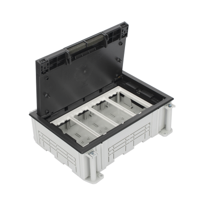 Cableado EstructuradoCaja Para Instalación en Piso Falso para Voz, Datos o Contactos Eléctricos / Capacidad para 4 Módulos / Espacio Embellecedor en la Tapa / Profundidad Ajustable de 90 a 120 mm / Los Módulos se Adquieren Aparte / (SF410/14CY)