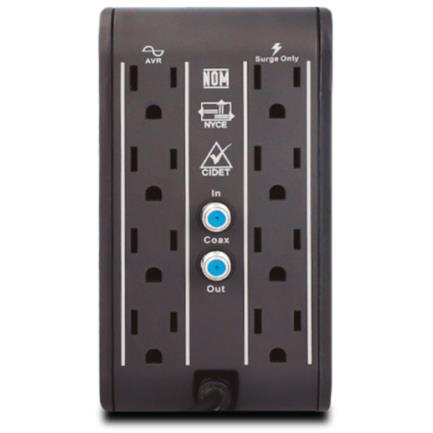 - Cantidad y tipo de salidas: 4 Nema 5-15R con AVR y supresión de pcios + 4 Nema 5-15R solo con supresión de picos