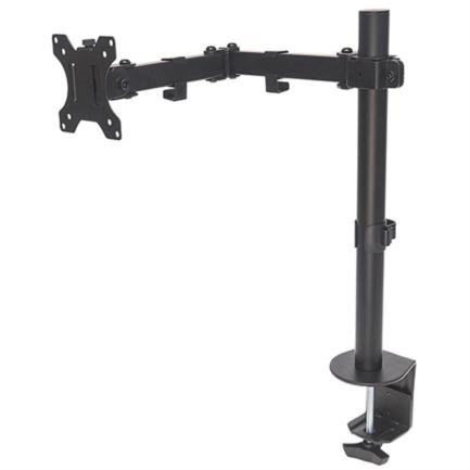 Administra tu escritorio. Maximiza la productividad. El Soporte para un monitor, de escritorio, con movimiento con brazos de doble articulación, ayuda a maximizar la efectividad de un espacio de trabajo. El soporte de un monitor mejora la organización en el escritorio, facilitando el trabajo en la computadora. Construido a partir de metal fundido, este soporte de montaje de un monitor cuenta con una abrazadera resistente que permite un montaje rápido, fácil y seguro sin la necesidad de perforar agujeros en escritorios. Sus ajustes de inclinación, rotación, movimiento de lado a lado, altura y tensión totalmente ajustables crean la posición perfecta para aumentar la productividad cómodamente. Tales capacidades de ajuste incluso pueden ayudar a reducir la fatiga ocular o la tensión del cuello y la espalda. Además, el poste de montaje ofrece una rotación fácil del monitor para permitir que otros vean presentaciones y producciones multimedia desde casi cualquier dirección.