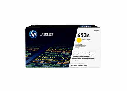 Tóner HP de color amarillo con un rendimiento de 16,500 páginas.
